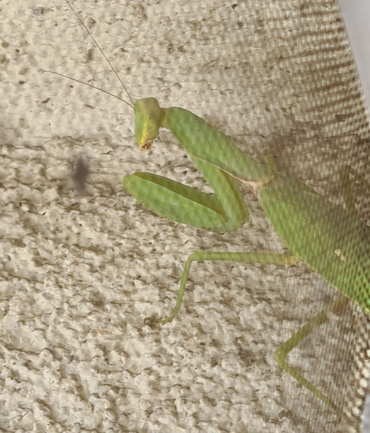 Ioana e o Călugăriță, v-ați prins deja. Praying Mantis. Sunt creaturi absolut fascinante, frumoase, ucigașe, fără milă. Cea din poză avea cam zece centimetri, era imensă pentru standardul european, care e cam de 7-9 centimetri. Sunt singurele creaturi care-și pot roti capul la 180 de grade și au un câmp vizual de 300 de grade. Ochii ăia mari nu sunt singurii: mai au încă trei ochi simpli între ei. Au o percepție vizuală fantastică, detectează cea mai ușoară mișcare pe o rază de peste 20 de metri.