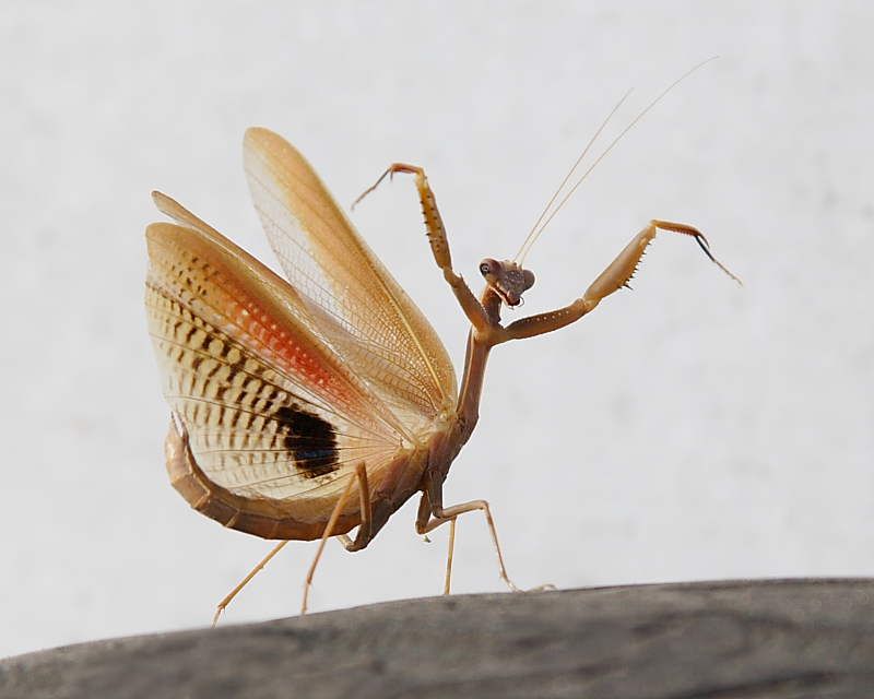 Când se simt amenințate, își ridică torsul, își aduc brațele cu țepi în poziție de luptă și întind aripile – arată într-un fel. Unele specii emit un sunet ca un „hissss” și nu prea-ți vine să te apropii, deși sunt absolut inofensive pentru om. Da, te pot mușca sau înțepa cu brațele cu țepi, dar e ca atunci când te tai în hârtie, nimic mai mult. Dacă te miști ușor, fără să le ameninți, le poți lăsa să se plimbe pe tine. Îmi pare rău că n-am avut cum să ajung la Ioana, că aș fi vrut s-o țin pe mână. În artele marțiale există câteva posturi de atac care sunt inspirate direct din cele ale Călugăriței. Natura știe ce face.